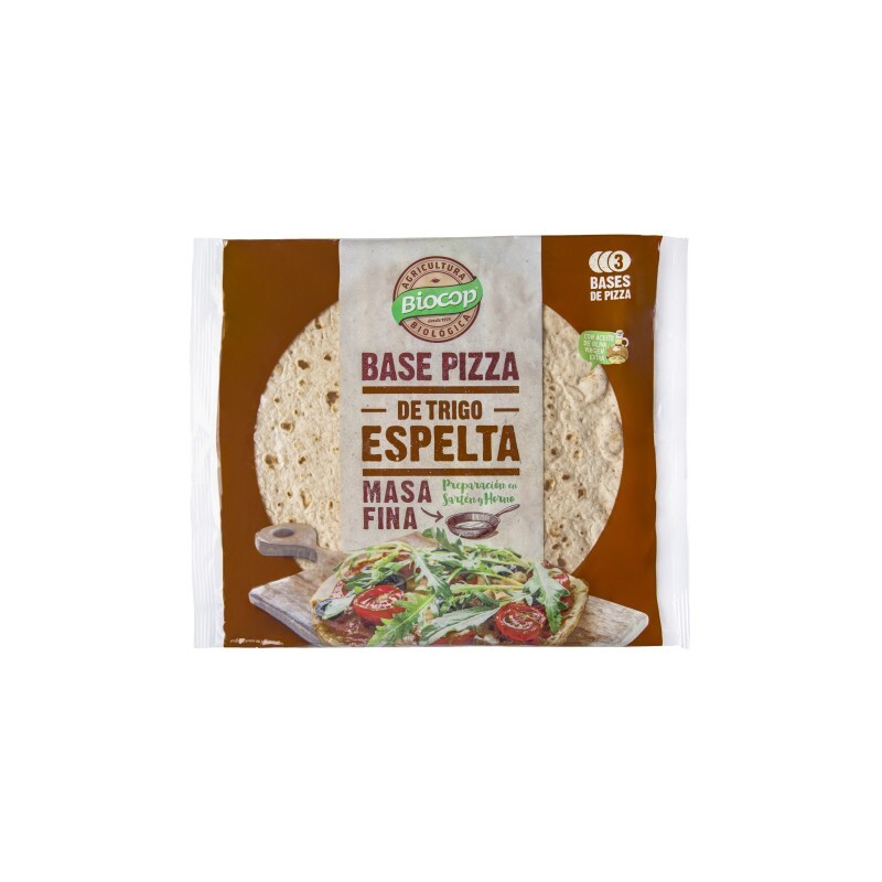2 Base de pizza horneadas de masa fina. Elaboradas con mezcla de harinas integral y blanca de trigo espelta Ideal prepararla en sartén y en horno. Sólo se debe esperar a que los ingrendientes queden calientes. Con aceite de oliva virgen extra No contiene leche no derivados. Apto para veganos
