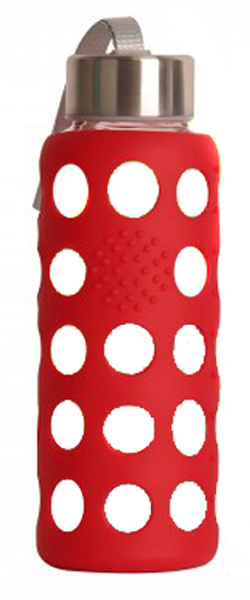Botella reutilizable de VIDRIO DE BOROSILICATO, más resistente a altas y bajas temperaturas que el vidrio convencional.