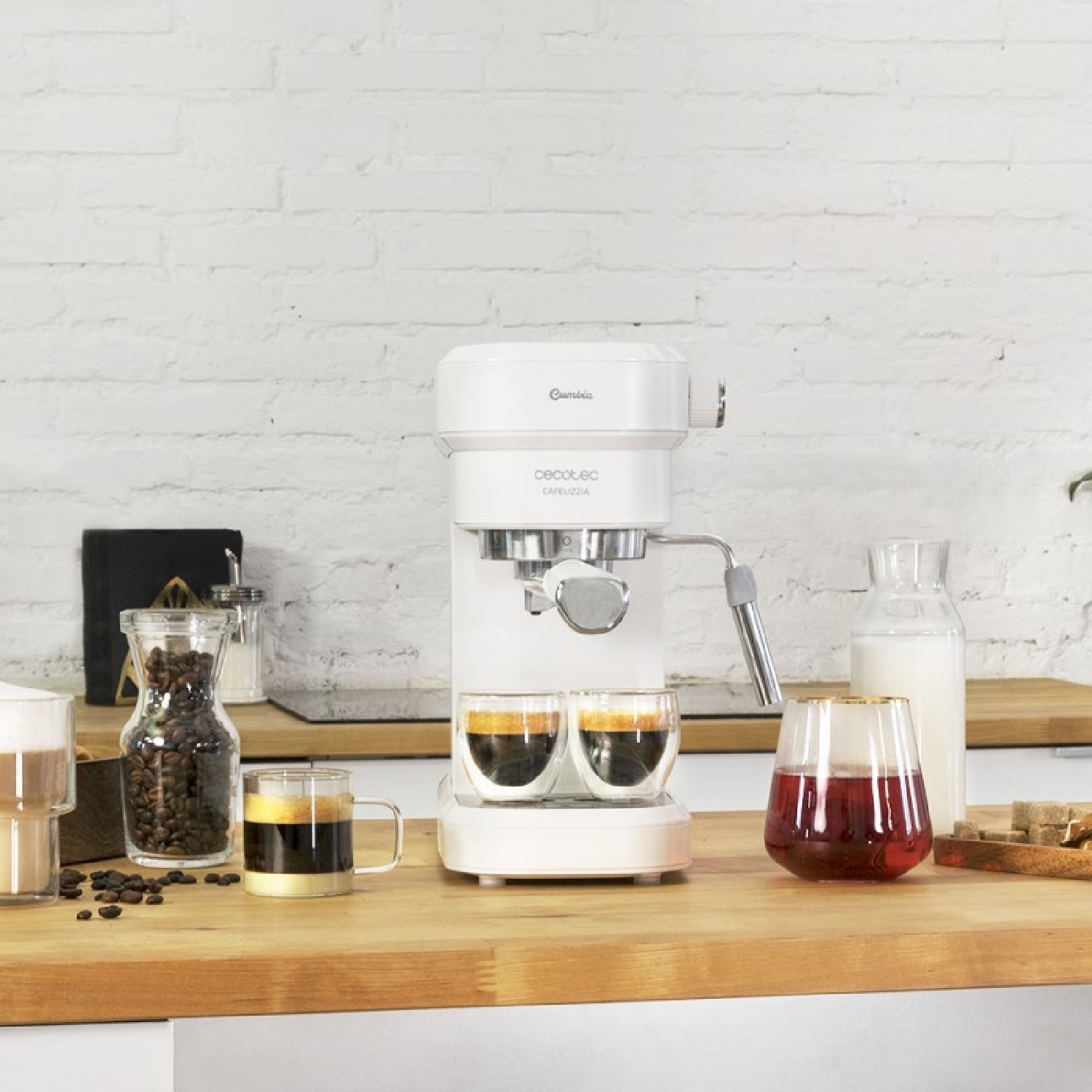 Máquina de café expresso com design elegante e compacto para os amantes do bom café. Permite fazer todo o tipo de cafés com uma potência de 1350 W e também emite água quente para as infusões.