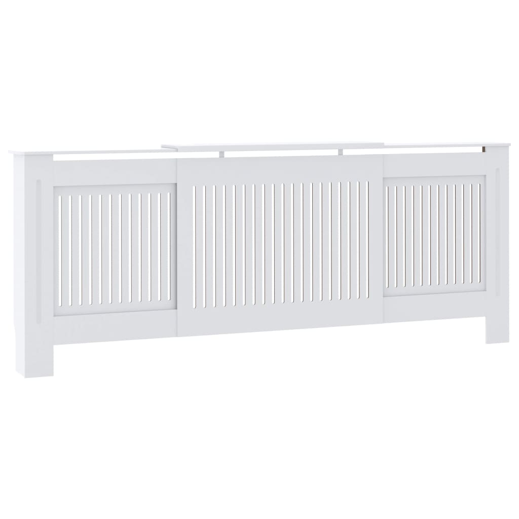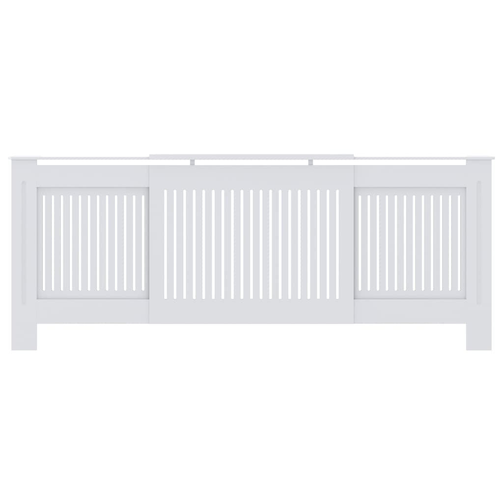Esta estrutura para cobertura de radiador é feita em MDF robusto e durável. Apresenta um design moderno e ripado, tornando-a adequada para qualquer decoração. A prateleira fornece espaço amplo para colocar os seus livros, molduras, enfeites etc.
