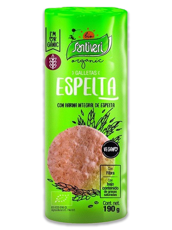 Galleta de espelta crujiente, Elaborada con aceite de girasol y oliva. Para consumir a cualquier hora del día, como desayuno o merienda. También entre horas o para acompañar el café.