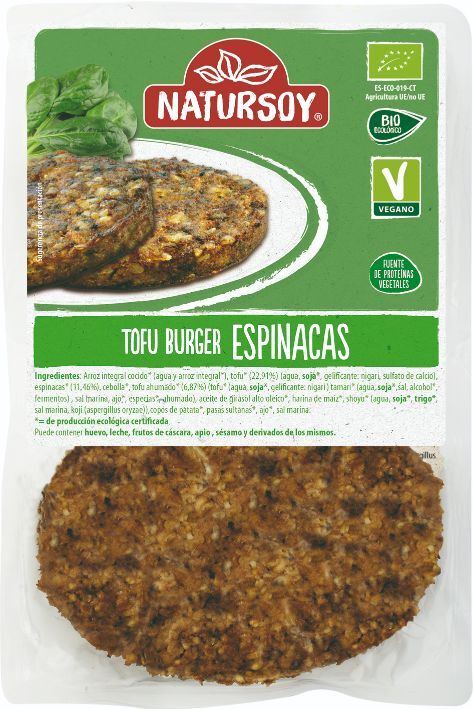 Hamburguesa vegetal de tofu y espinacas de Natursoy.