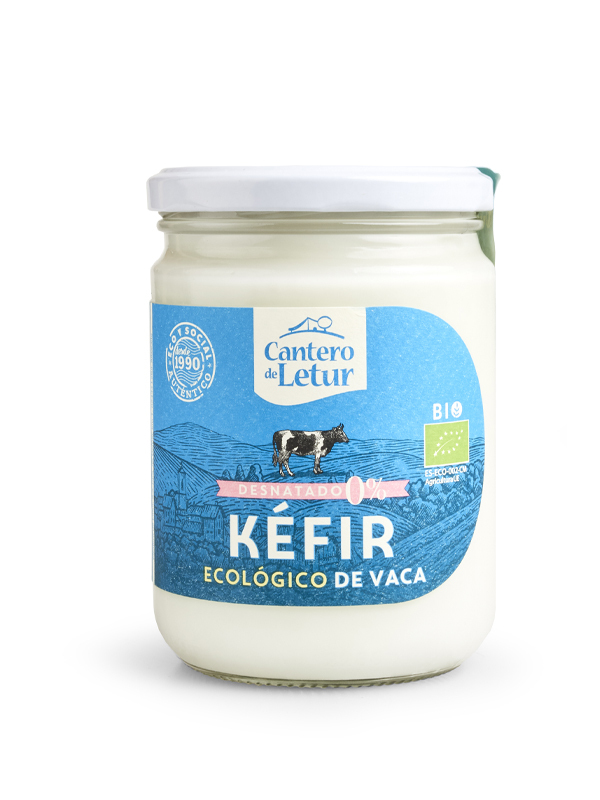 Puro sabor de kéfir sin calorías. Elaborado con leche de vaca desnatada con un máximo de 0,5% de grasa. El Kefir es leche fermentada similar al yogur pero producida por un fermento distinto, mezcla de bacterias y levaduras. Tiene cualidades como fortalecer las defensas frente a infecciones y hacer más asimilables otros nutrientes. De textura más líquida que el yogur. Refrescante.