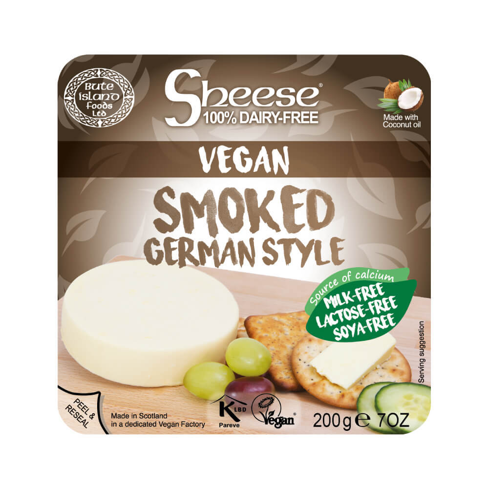 Queso vegano estilio cheddar ahumado, sin soja, ideal para fundir y