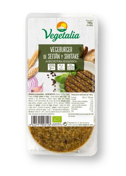 Vegeburguer de Seitan y Shiitake de Vegetalia producto fresco elaborado con una rica combinación de ingredientes para comer sano. Proteína vegetal precocinada.