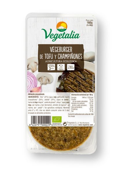 Vegeburguer de tofu y algas de Vegetalia producto fresco elaborado con una rica combinación de ingredientes para comer sano. Proteína vegetal precocinada.