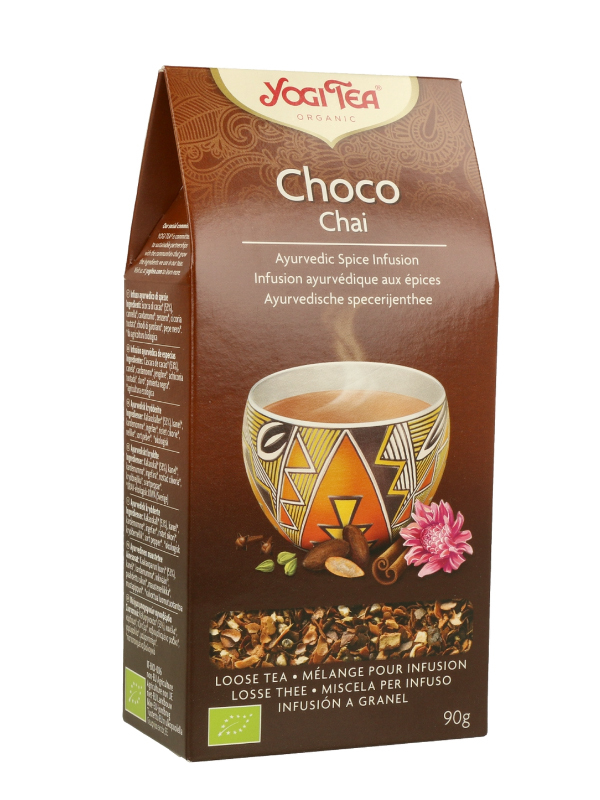 YOGI TEA® Choco ha sido de los favoritos durante años. El cacao se une con el regaliz dulce, la canela, el jengibre picante y el cardamomo en una mezcla celestial. Siéntate, toma un sorbo y disfruta del maravilloso aroma del chocolate. La mejor forma de tomarlo es endulzado y con un poco de leche, animal o vegetal. La esencia de esta infusión es: ?Deliciosa indulgencia?.